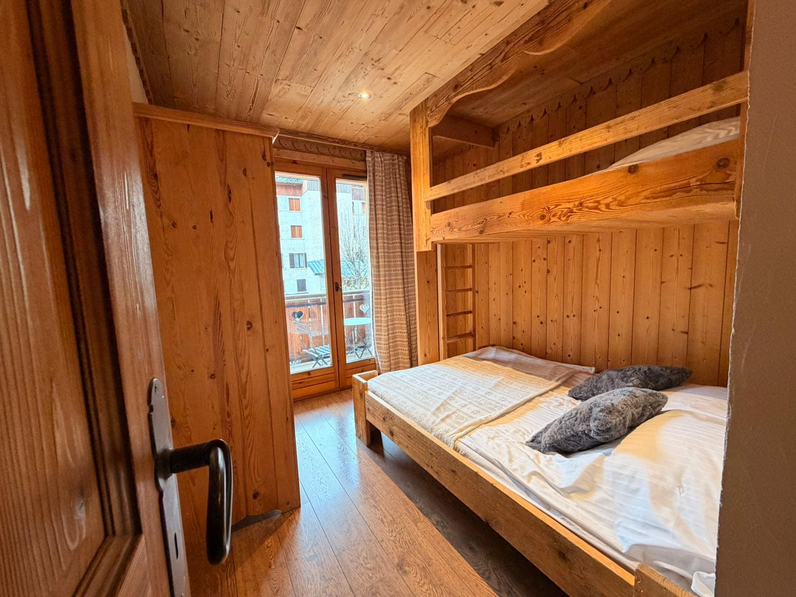 Pensée pour les séjours en famille, cette chambre de l’appartement La Nô offre un espace chaleureux et convivial, entièrement habillé de bois pour une ambiance authentique et montagnarde. Elle dispose d’un lit double (140×200) et d’un lit simple (90×200), idéal pour accueillir parents et enfant dans un cadre cosy et confortable.